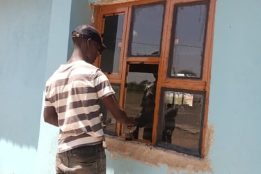 17/Feb/26: Las ventanas y puertas del edificio se están colocando. Ya podemos tener a los niños y niñas seguros en época de vientos y lluvias fuertes.
